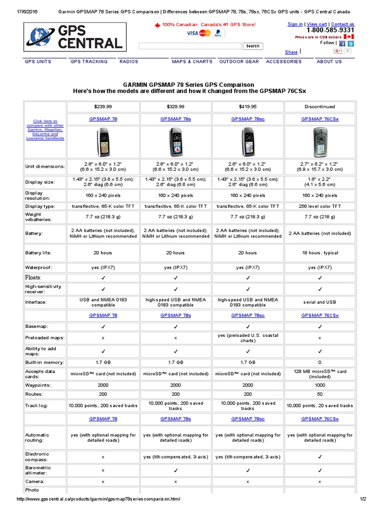 Garmin GPSMAP 78 Series GPS Comparison Differences Between GPSMAP 78